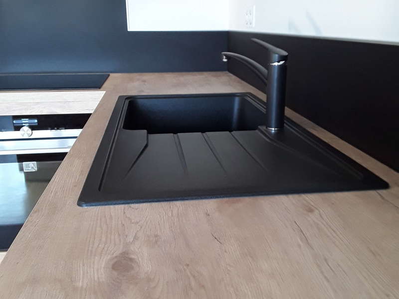 Ligne sans poignée, plan de travail en granit , le tout en brillant