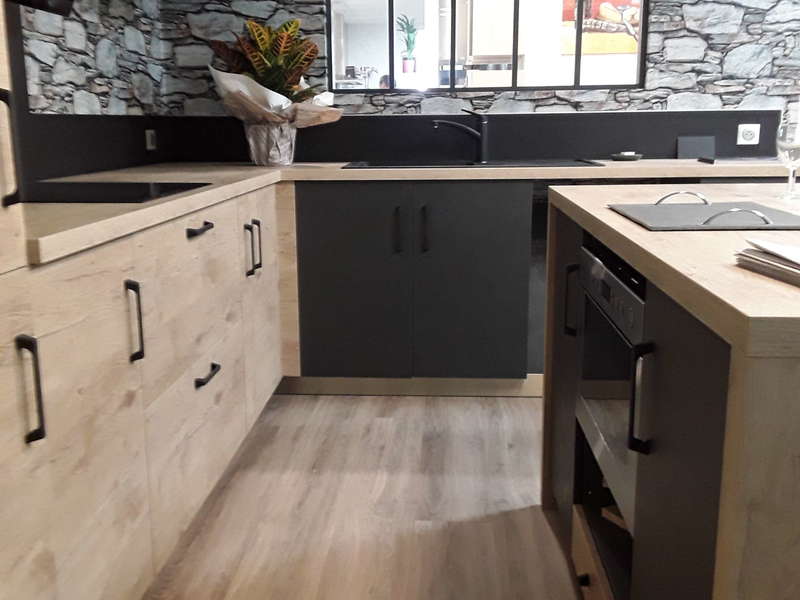 Magnifique cuisine foret et plan bois structuré, moderne et de caractère, La Celle Saint Avant